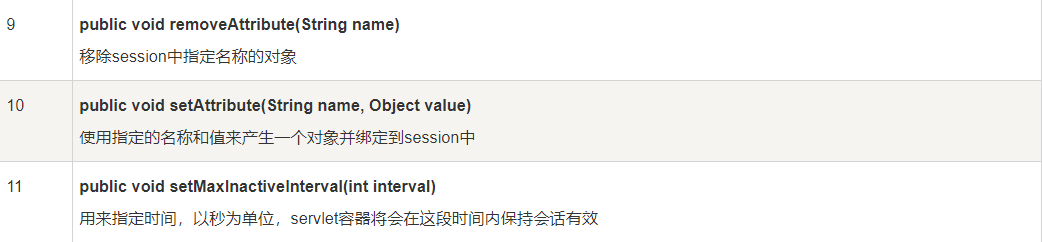 - int getMaxInactiveInterval()获取session最大的不活动时间(秒),默认为30分钟,当session在30分钟内没有使用,那么Tomcat就会在session池中移除;