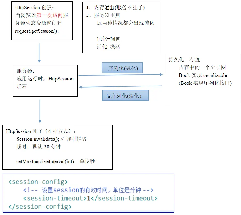 - request.getSession(true)/request.getSession():两个方法一样,当session对象不存在时,创建session对象