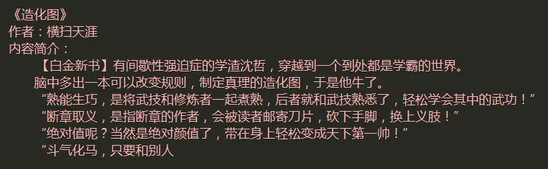 首先找一个电子书下载链接,形如:https://xiazai.xqishu.com/txt/%E9%80%A0%E5%8C%96%E5%9B%BE.txt, 这个 URL 地址指向了一个 txt 文件,这个文件包含小说全文内容。分析这个地址,可以发现,这里把书名做了 URL 编码,然后作为链接的请求地址内容。这种链接很容易处理。