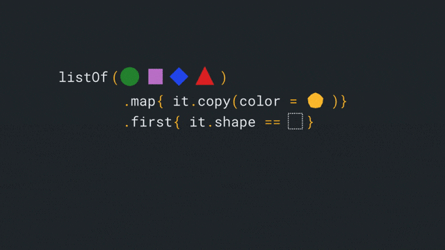 public inline fun <T> Sequence<T>.first(predicate: (T) -> Boolean): T { for (element in this) if (predicate(element)) return element throw NoSuchElementException(“Sequence contains no element matching the predicate.”)}first
