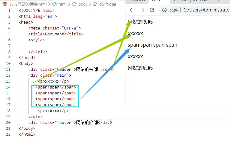 浮动的特性之破坏性 姜雅君 2020-03-21 139 阅读1分钟 浮动的特性之破坏性: 破坏了流式布局,可以让块级元素并排显示。 流式布局: 按照 标签 的特征,进行的默认布局,从上到下,从左到右进行排列,块级元素独占一行,行内元素并排显示。在CSS3中,提出更好的一种布局方案,叫flex布局。在移动端(手机,平板)开发,可以使用flex来代替浮动布局。