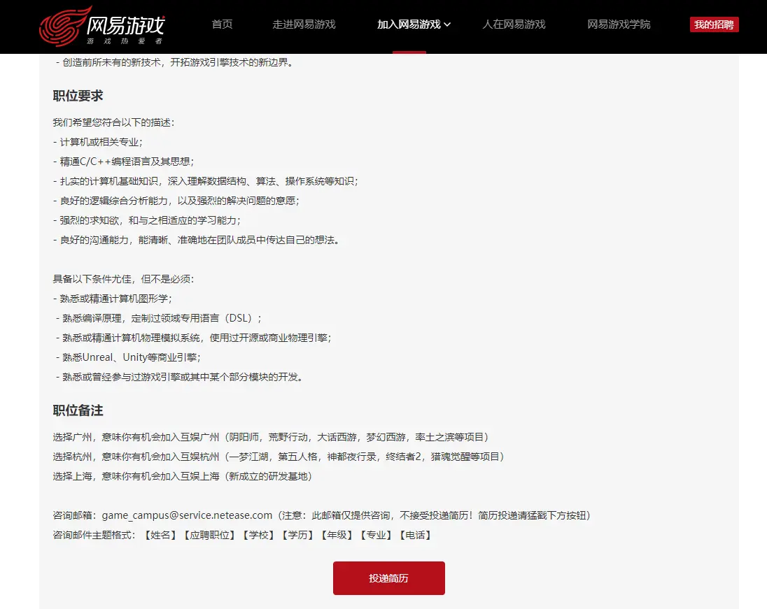 网易游戏实习内推 capesky不想说话 2020-03-21 622 阅读1分钟 网易游戏2021春招内推 操作步骤: 登录game.campus.163.com 创建自己的简历 进入招聘的页面,选择自己的岗位投递简历 4. 填好相关信息,选择内推,填写内推人信息,内推信息涉及个人隐私,关注C2H说微信公众号,回复wynt可以获取本人的信息,可以填写。 然后提交简历即可 本人收到内推信息之后将会第一时间迅速帮各位推荐。 关注公众号回复 wynt
