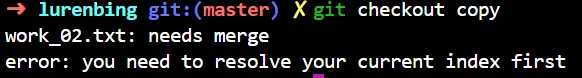 又出现了冲突,看起来路人丙又忘了用专属文件名,没办法只能改改名字再来,不然还是得合并。但是现在切换回copy出现了问题: