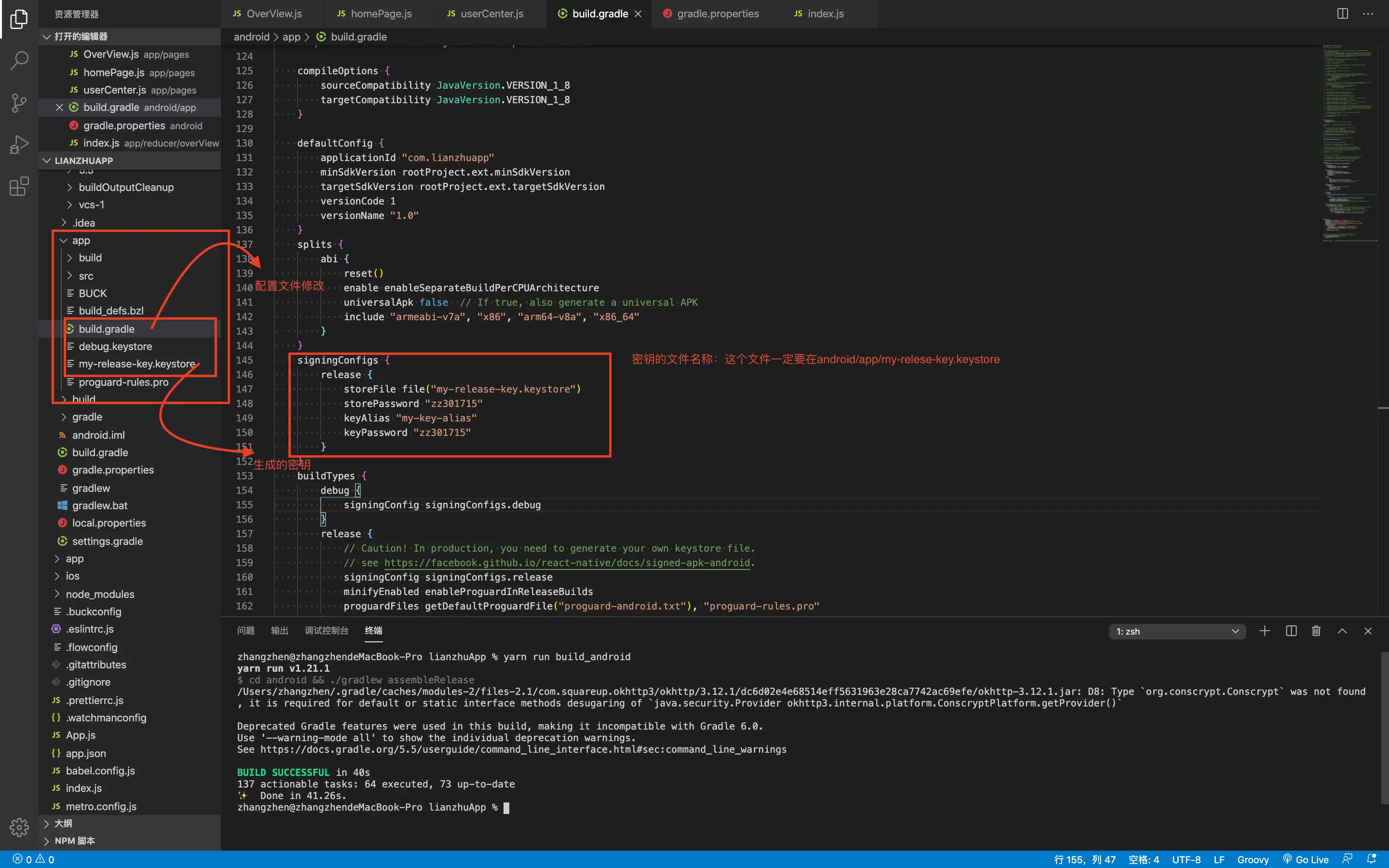 - 3.1 把你上面生成的.keystore文件放在你reactnative项目下的andriod/app文件夹下。
