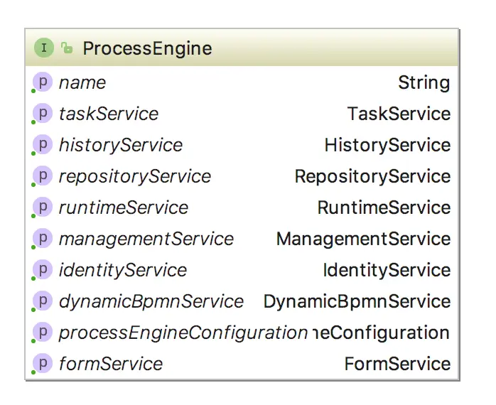 Flowable整体是通过ProcessEngine来操作的。即不管什么框架操作流程,都需要通过ProcessEngine这个类来处理。ProcessEngine是Flowable对外公开的门面。UML类图如下: