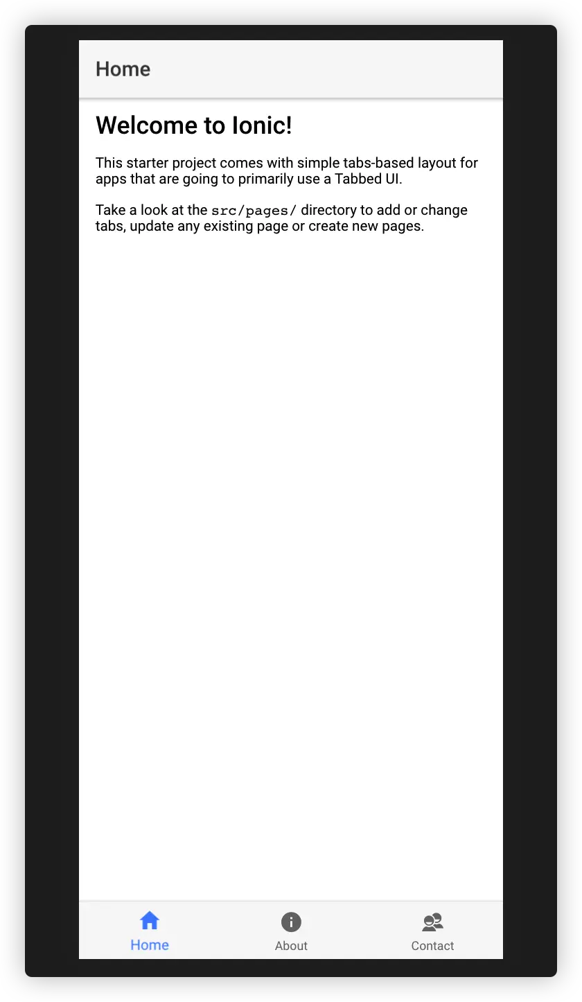 ionic start tabTest --type=ionic-angular- 搭建完成后我们使用 ionic serve 这个命令行来运行项目