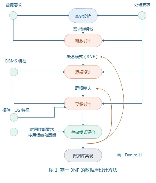 目前已有的数据库设计方法可分为四类,即直观设计法、规范设计法、计算机辅助设计法和自动化设计法。直观设计法又称单步逻辑设计法,它依赖于设计者的知识、经验和技巧,缺乏工程规范的支持和科学根据,设计质量也不稳定,因此越来越不适应信息管理系统发展的需要。为了改变这种状况, 1978 年 10 月来自 30 多个欧美国家的主要数据库专家在美国新奥尔良市专门讨论了数据库设计问题,提出了数据库设计规范,把数据库设计分为需求分析、概念结构设计、逻辑结构设计和物理结构设计 4 个阶段。目前,常用的规范设计方法大多起源于新奥尔良方法,如基于 3NF 的设计方法、 LRA 方法、 面向对象的数据库设计方法及基于视图概念的数据库设计方法等。我们需要了解基于 3NF 的数据库设计方法。