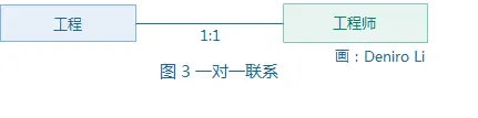 例如在一个施工单位中,如果规定每项工程最多只能由一名工程师负责管理,而一名工程师最多也只能负责一项工程,则工程师与工程间的这种管理联系便是一对一联系。