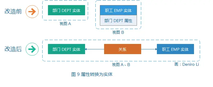 实体变换为属性时通常要满足一些特定条件,例如,该实体通常只含有一个与同名属性具有共同特征的属性,且一定存在一个与该实体存在联系的另外的实体。