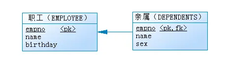 其中 kinship 表示职工亲属与职工的关系,可以取值为“配偶”、“儿子”、“女儿”等。