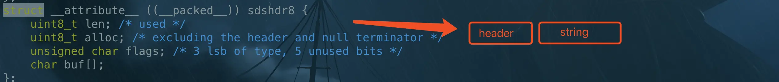 flag;//sdshdr5 sdshdr16 sdshdr32 sdshdr64