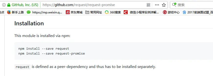 5:由于要请求网络,所以要安装请求网络的库,请求网络的库可以使用node.js中的request库,方便快捷:github.com/request/req…