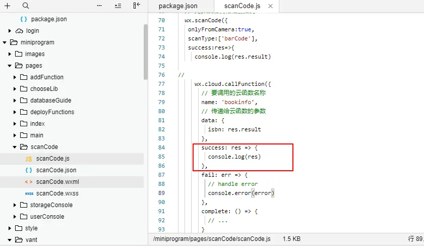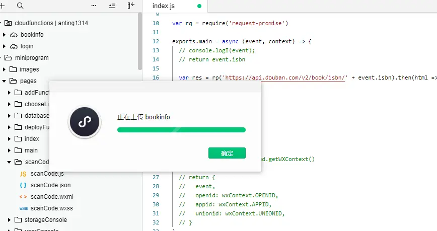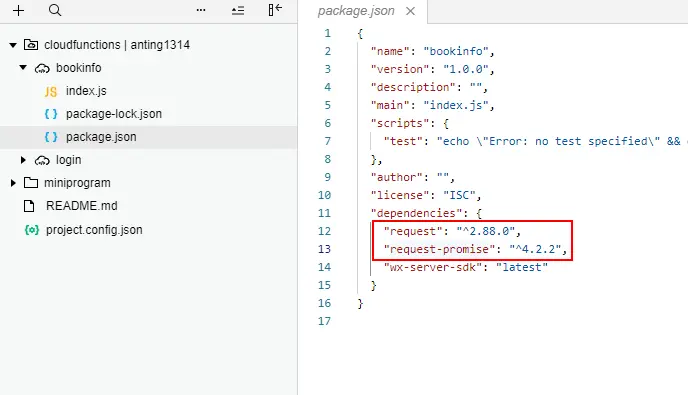 要调用的云函数的名称name:要改成成实战二教程里面建立的云函数bookinfo
