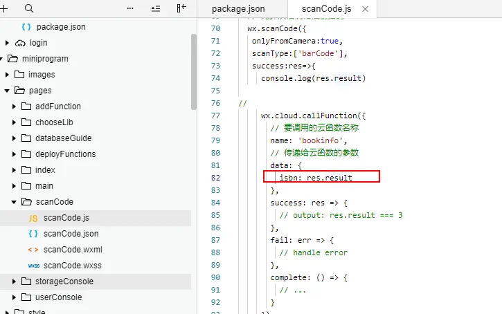 1:在云函数之中,拿到小程序端扫一扫获取到的传的编码,该如何传参?