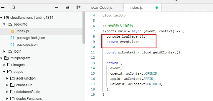 - 小程序云开发实战三:编写云函数代码 1:在云函数之中,拿到小程序端扫一扫获取到的传的编码,该如何传参? 云函数API:https://develope... 祈澈菇凉阅读 3,011评论 2 赞 4