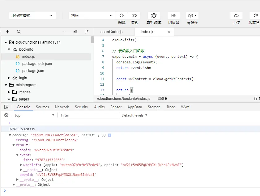 小程序云开发实战一:小程序扫一扫获取到图书ISBN码(图书条形码)