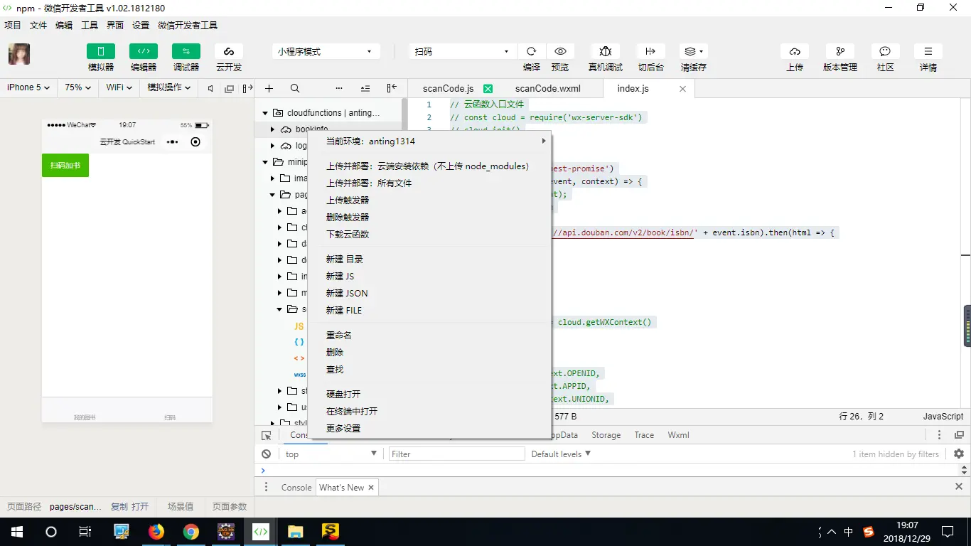 - 小程序云开发实战二:小程序云开发云函数安装依赖步骤 1:安装nodejs,准备好环境,这一步就不细说了,没有安装的可以自行百度,不知道有没有安装的可以输入 node ... 祈澈菇凉阅读 5,369评论 1 赞 12