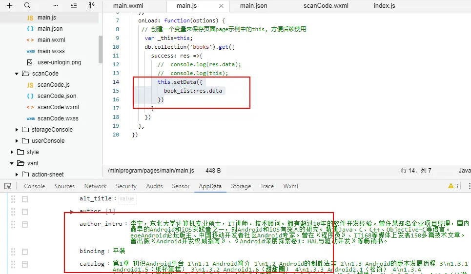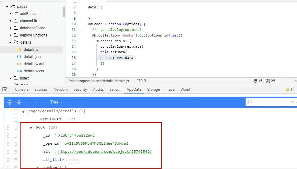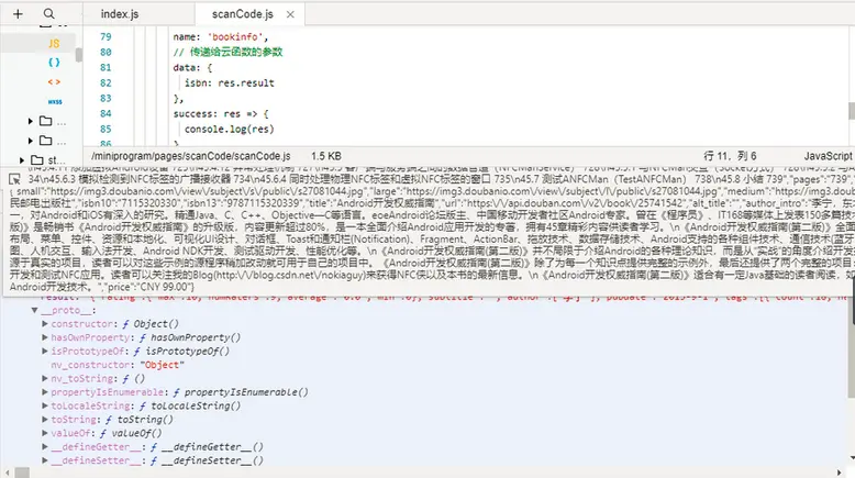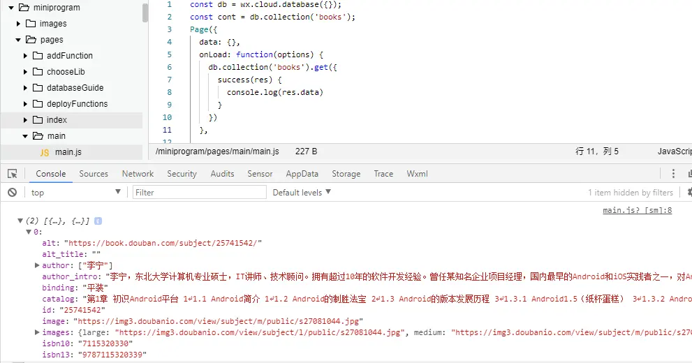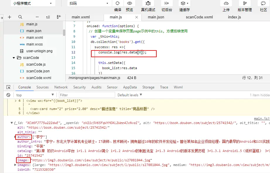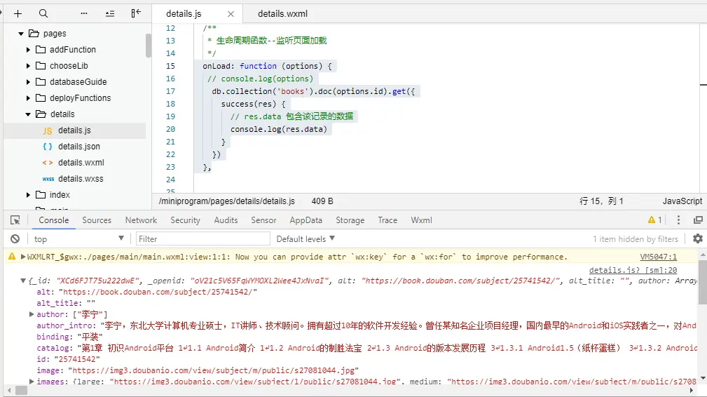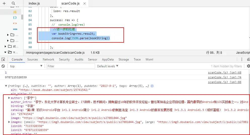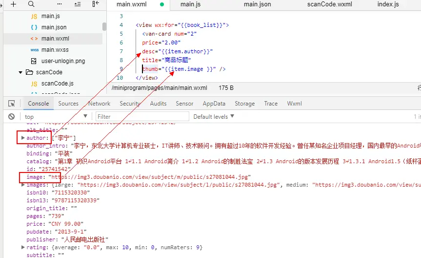 3:图书信息请求到之后,会将其中无用的信息返回给小程序中,小程序中再拿出获取到的信息,创建图书条目