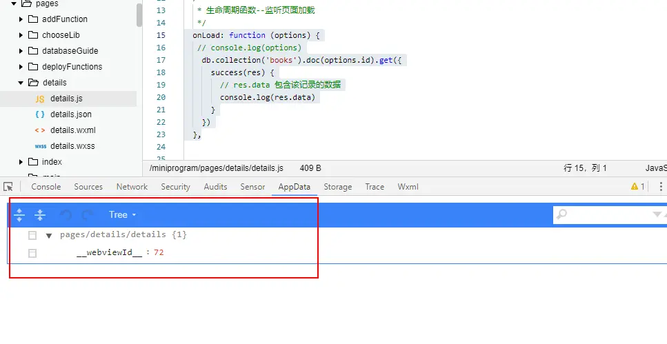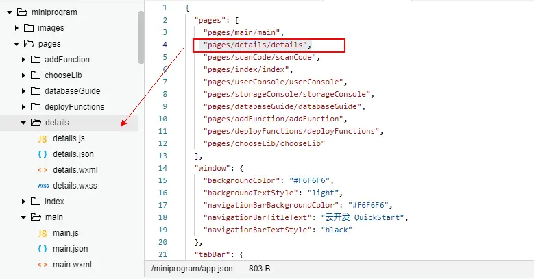 1:实战六之中,列表页已经完成,现在新建一个详情页,打开app.json,"pages/details/details",,自动生成了一个详情页