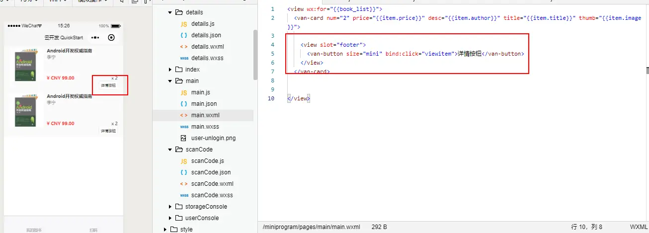 2:打开首页列表页代码,绑定详情按钮跳转事件 wxml: