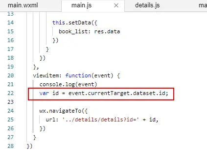 6:下面实现点击详情按钮跳转详情页面,看到想要的具体的内容,看完控制台,因为具体数据是来自于event,currentTarget