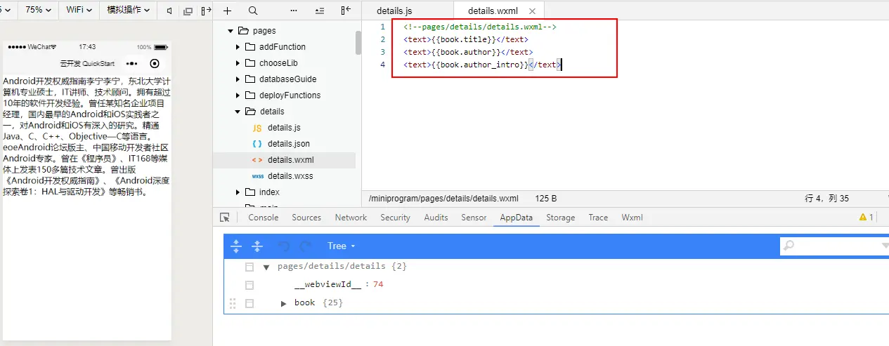3:具体展示 在wxml里面写上想要拿到的数据,ok,详情页面展示的数据