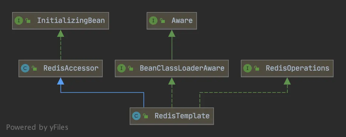 我们所有的入口,都是基于 redisTemplate 来进行交互操作的,我们看下 redisTemplate 的实现 放一张类图