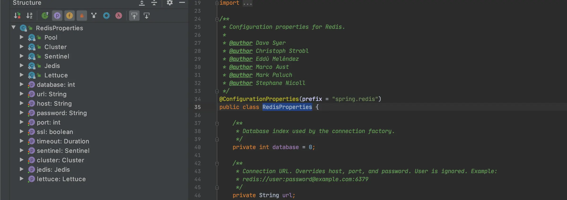 看下关于redis 配置类内都有哪些元素 (yml 中的配置和配置类一一对应)
