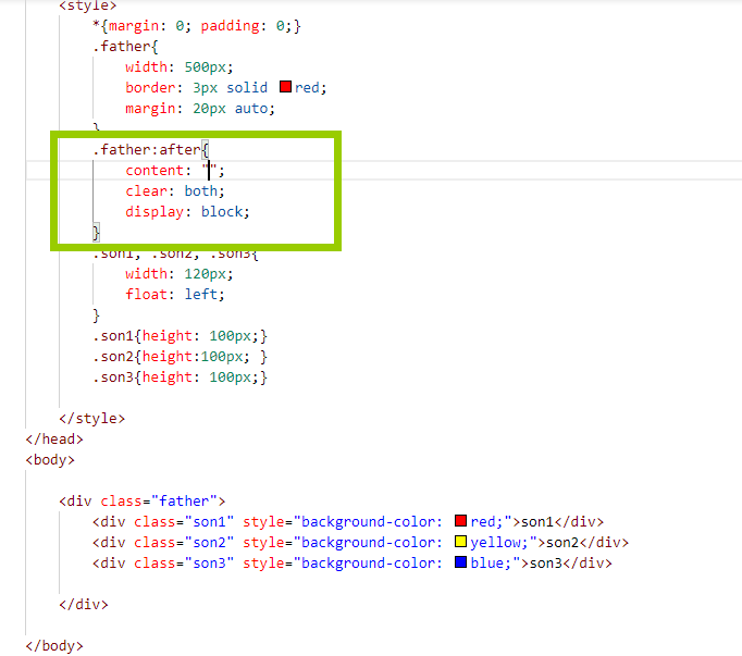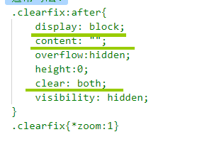 封装一个清除浮动的类 姜雅君 2020-03-21 213 阅读1分钟 真实开发中,我们会使用after伪元素来清除浮动: 伪类选择器:不存在的一个类 :hover 伪元素:页面中不存在的一个元素 after伪元素: .father:after 表示在father元素 的内部 最后添加一个元素 创建出来的伪元素 默认并不是块级的,clear 只能 作用块级元素,所以说需要给这个伪元素添加display:block 提炼出一个清除浮动的类: 通常写法:兼容IE .clearfix{*zoom:1}