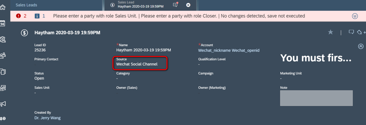 假设系统里已经有许多的Lead历史数据,而我们正在进行的微信小程序和C4C集成的项目里,又创建了许多新的Lead数据。如何将这些新的在微信小程序里调用OData服务创建的Lead数据同老的历史数据做区分呢?