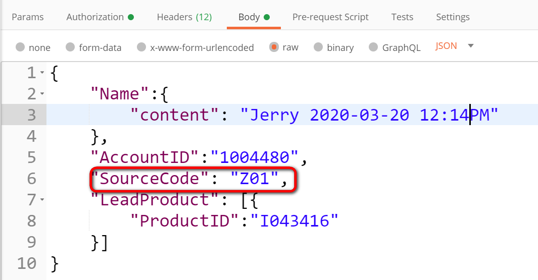 对于AI Card项目来说,所有的Lead经由微信小程序创建,因此调用OData API时,SourceCode指定为“Wechat Social Channel”的代号:Z01