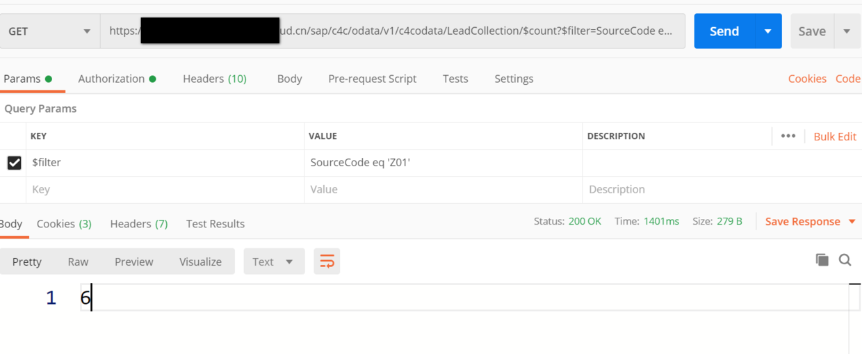 这样,在读取操作时,使用inlinecount=allpages,能一并返回SourceCode为Z01的Lead一共有多少个。