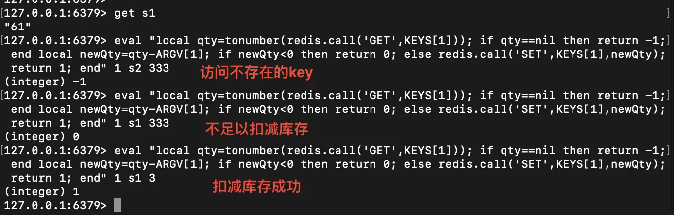 lua脚本不难学,我看了一下条件选择、分支语句以及判断语句之后就能自己写出脚本了。因为我们也并不需要用lua做多复杂的事情。下面给出一个原子性修改库存的lua脚本例子: