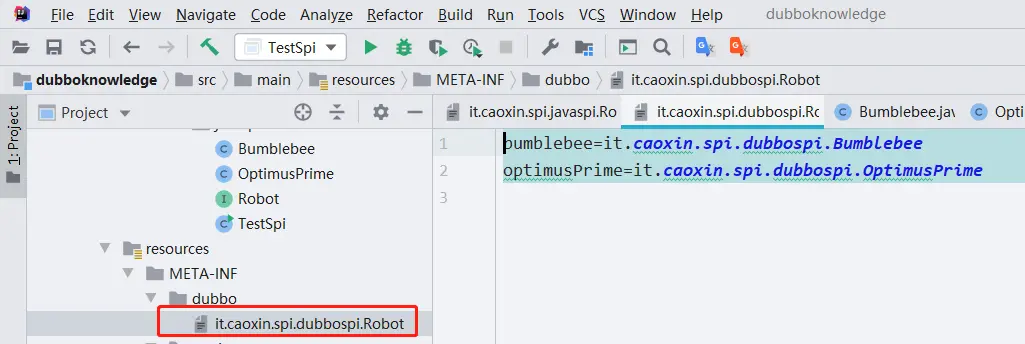 - 接着在resources文件夹下对应创建目录services如图,并在里面吸入两个实现类的全类名