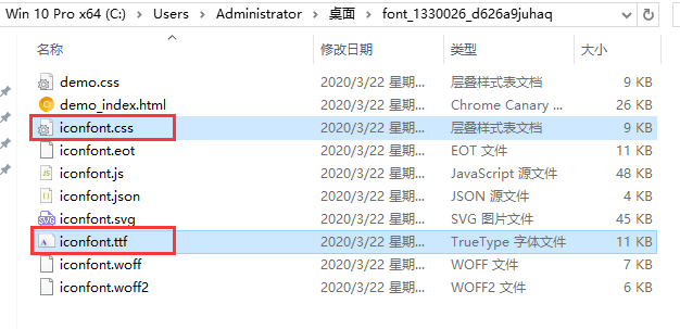 选择iconfont.css和iconfont.ttf导入Flutter项目中