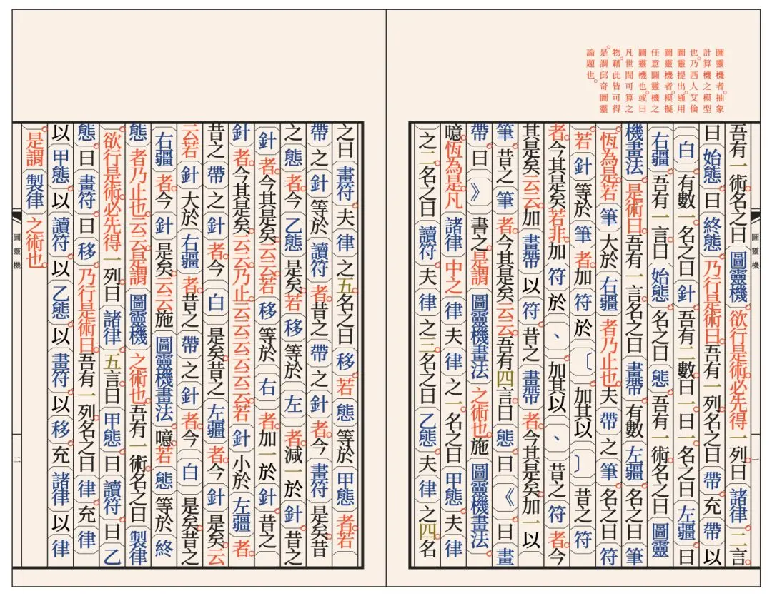 src / render.js 可以将 wenyan 程序渲染为有历史感的印刷书籍页面图像。它还可以将生成的SVG 文件解析回原始程序。下面是用 wenyan 编写的通用图灵机的渲染图: