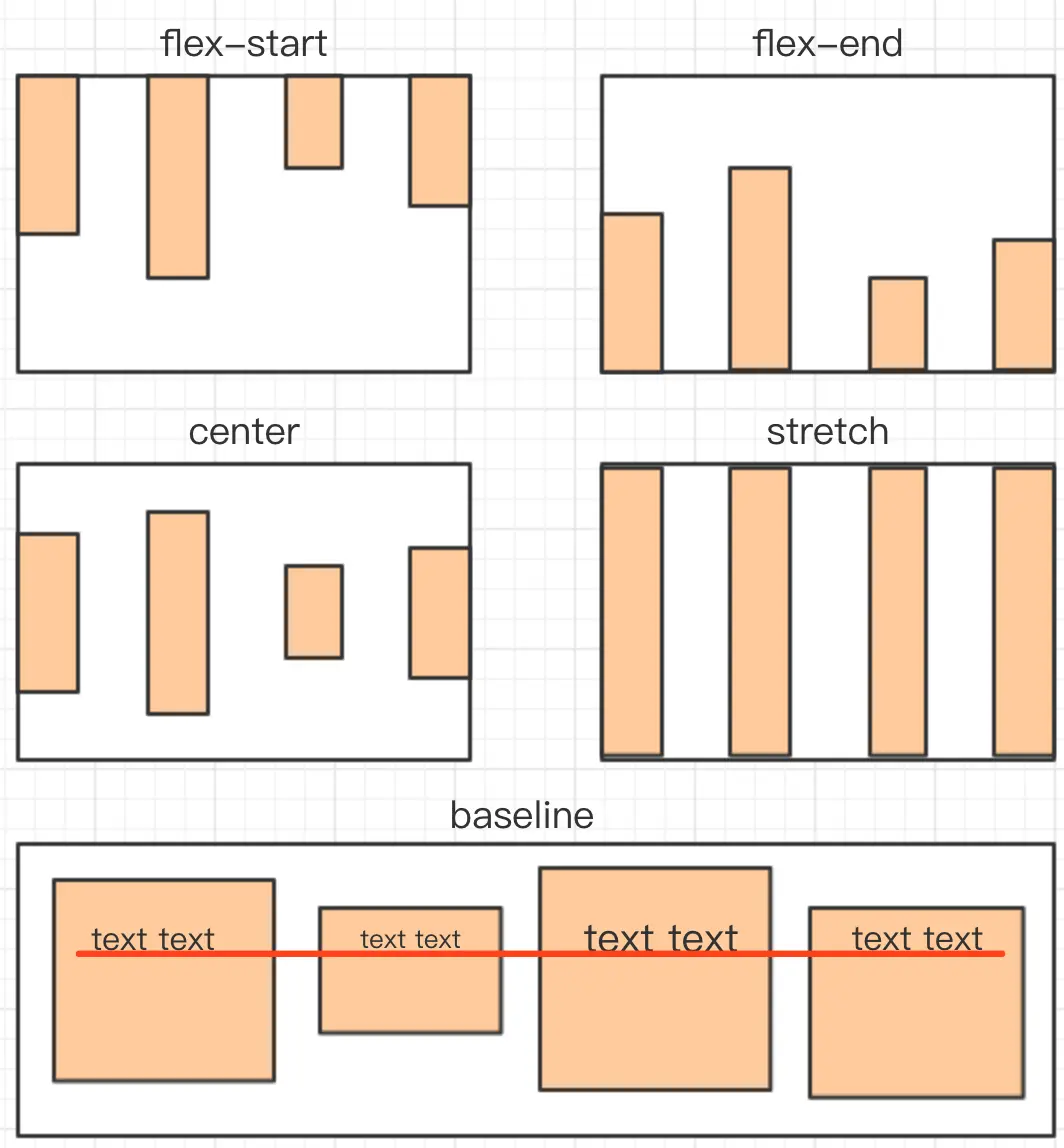 align-items: flex-start | flex-end | center | baseline | stretch;