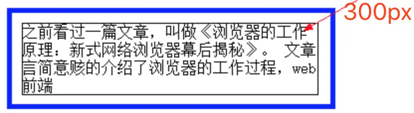 如上图,得到网页效果之后,我们可以用截图工具来量一下文字内容的宽度。发现,文字内容的宽度刚好是 300px,也就是我们设置的宽度。