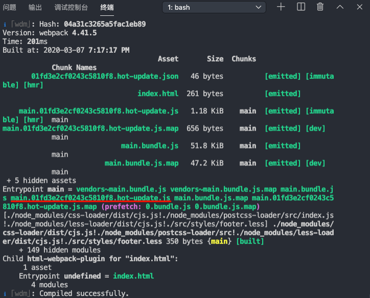 然后当我们改变代码,再次重新打包编译的时候,会看到有一些