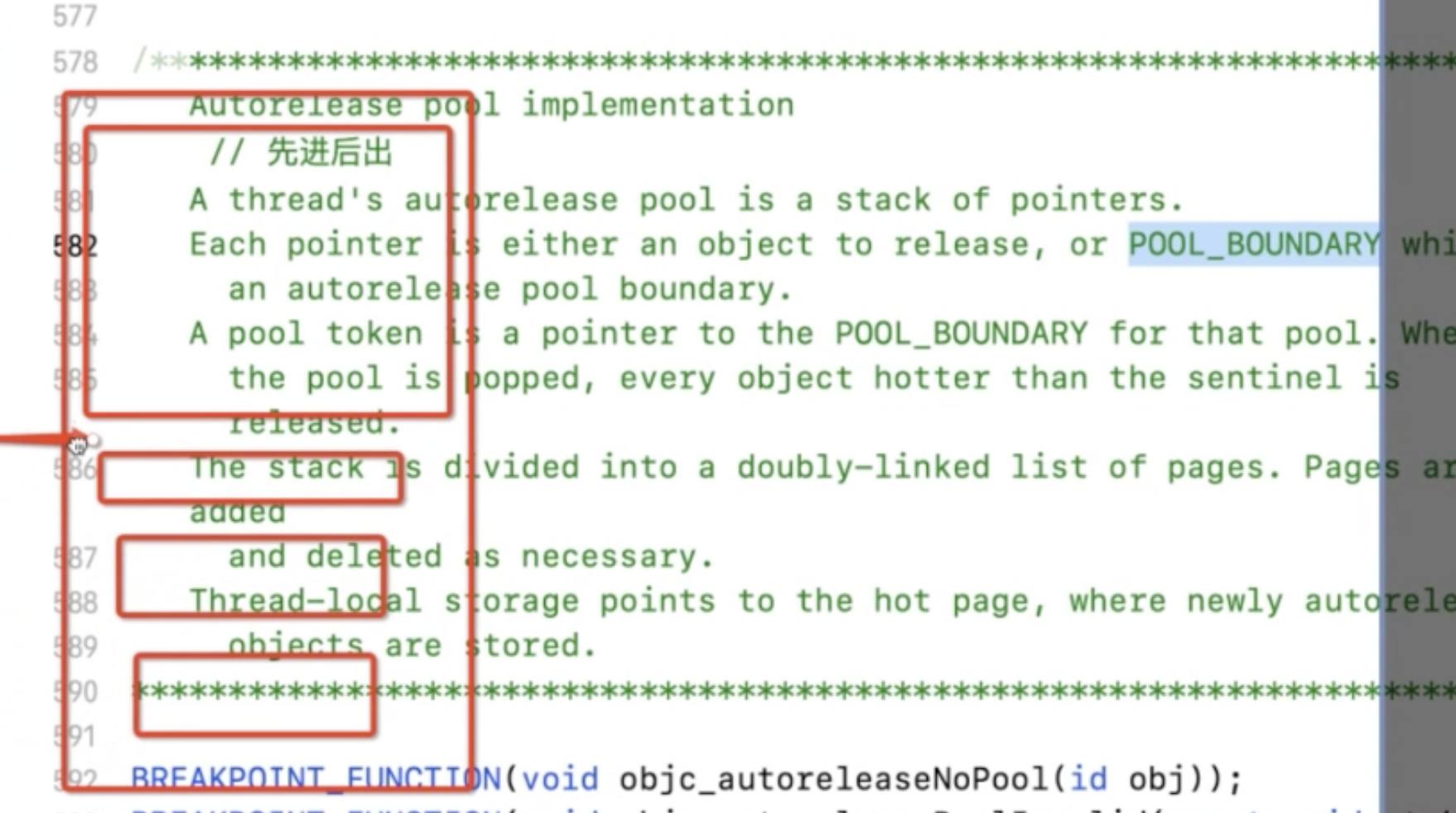1.先进后出 2. POOL_BOUNDARY 边界对象,用来区分AutoreleasePoolPage自己的成员变量和加进去的对象
