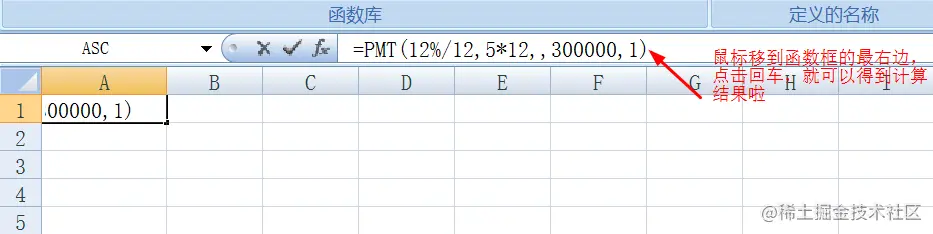 - 都输入完了之后,将鼠标移到函数框的最右边,点击回车,得到计算结果
