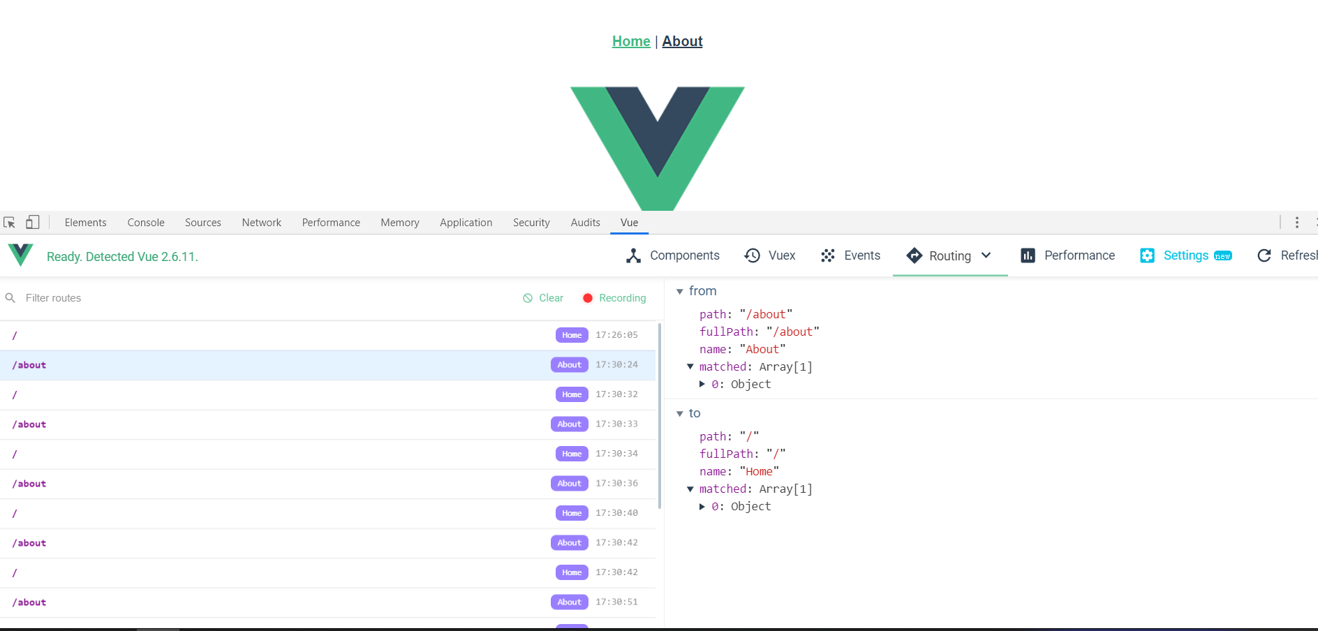 可以更加直观的看到路由切换相关的信息