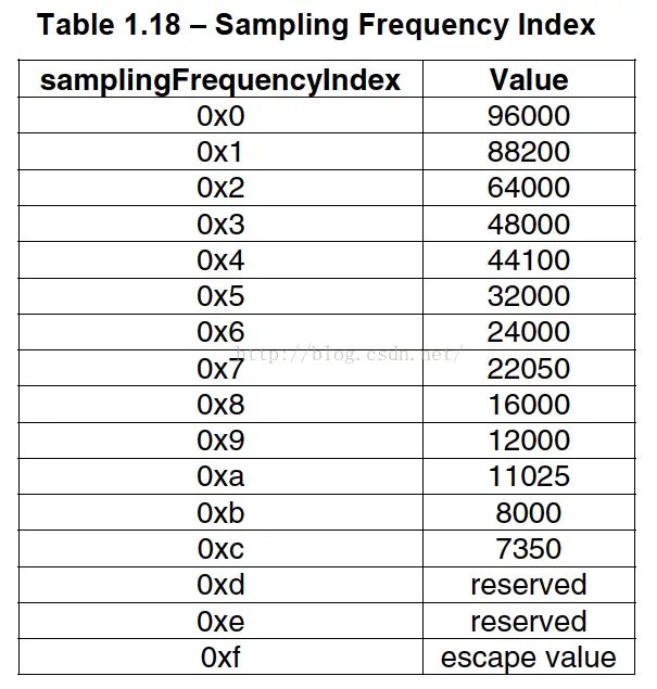 - sampling_frequency_index:采样率的下标