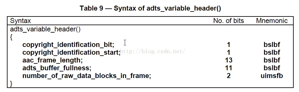 可变部分adts_variable_header