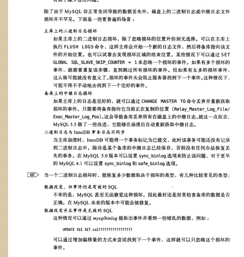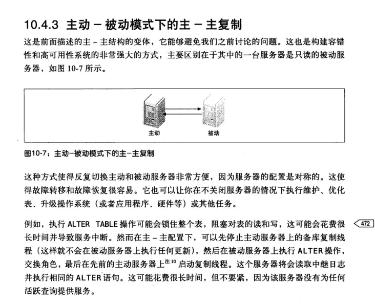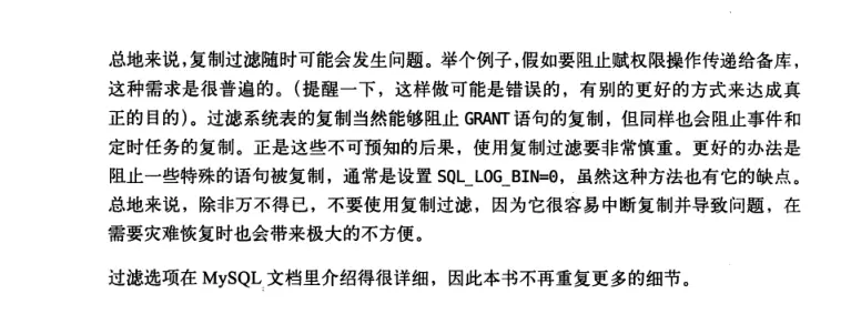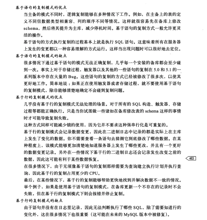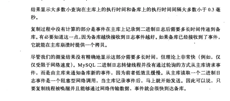 - 备库有一条I/O线程(同步日志到中继日志中),一条sql线程获取日志执行更心数据,实现了获取事件与重放事件的解耦,允许异步执行。但是这样会限制复制的过程,其中最重要的一点是主库并发执行的查询,在备库只能串行化执行,因为只有一个sql线程重复中继日志,这也是很多功能性能瓶颈所在