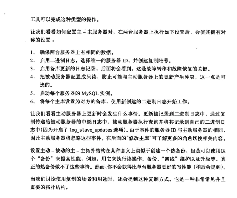- 复制一般不会增加主库的开销(启用二进制日志、还有一点网络及IO的消耗)