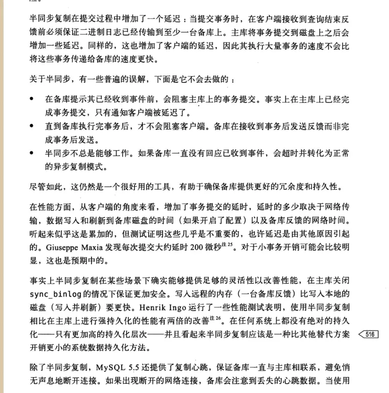 - 半同步复制:可以帮助确保备库拥有所有主库数据拷贝,减少了潜在数据丢失危险