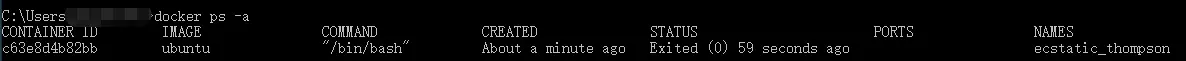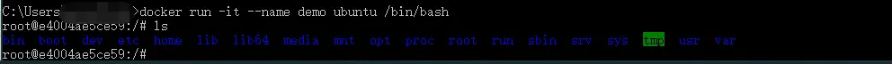 docker run -it --name xxx ubuntu /bin/bash // -it = -i(表示持续运行) -t(分配一个命令行用来交互) --name 命名 /bin/bash 指令,是用来规定你要使用哪种命令行交互,可以省略