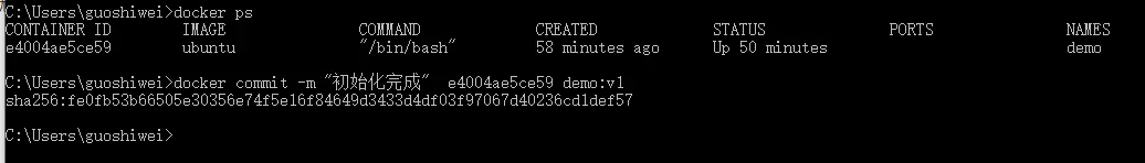 docker commit -m "初始化完成" xxx(CONTAINER ID) xxx(要命名的镜像名)