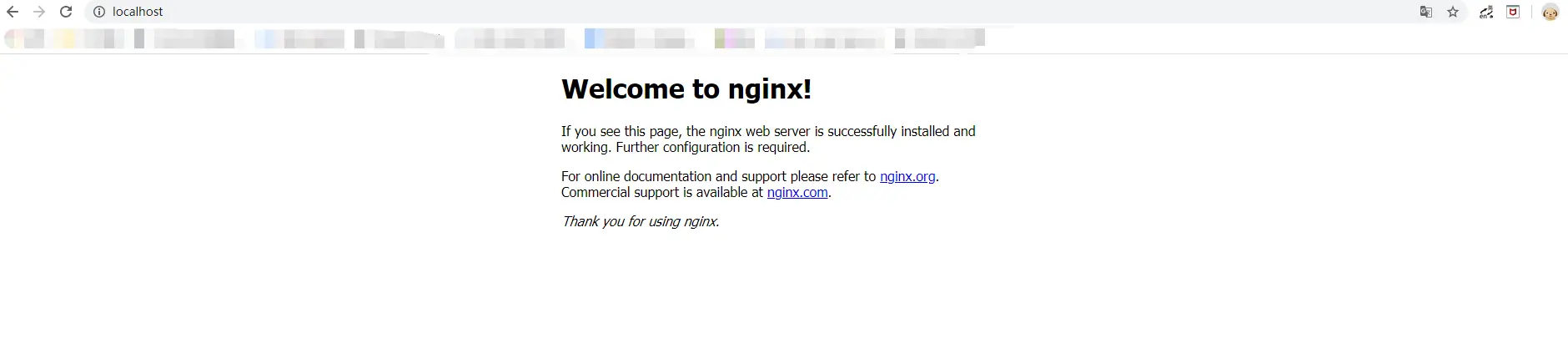 好的,我们看到容器内部nginx已经启动,那么我们去本地浏览器看看是否能看到nginx的页面吧